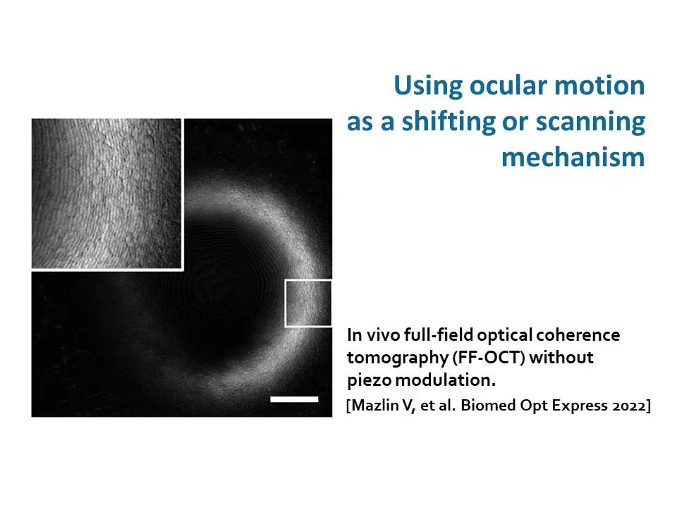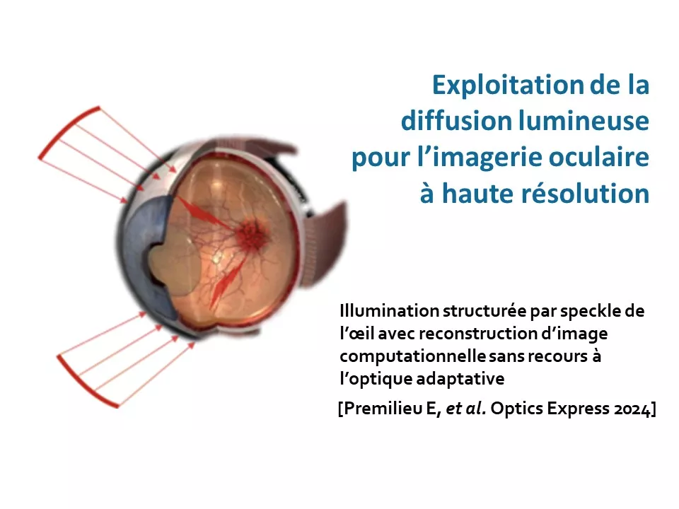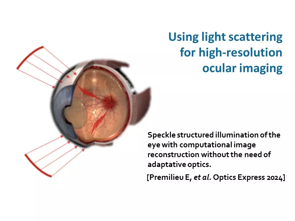 - Le deuxième axe explore la possibilité de transformer certaines limitations, telles que les mouvements oculaires et la diffusion de la lumière, en atouts. Ainsi, l’équipe développe des techniques pour exploiter la diffusion lumineuse (objectif 3) et les mouvements oculaires (objectif 4) afin d'obtenir des images oculaires à haute résolution.